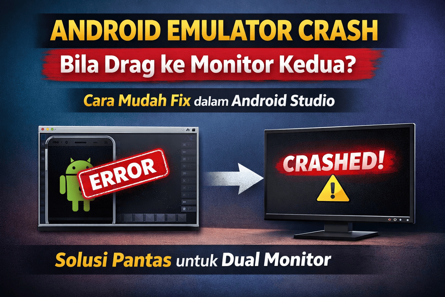 Emulator hang atau terus tertutup bila drag ke monitor kedua.