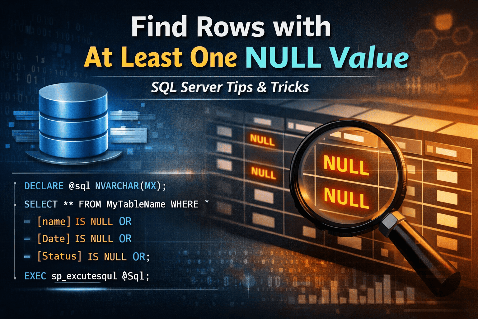 During data audits, migrations, or quality checks, it’s often necessary to identify records that contain at least one NULL value.